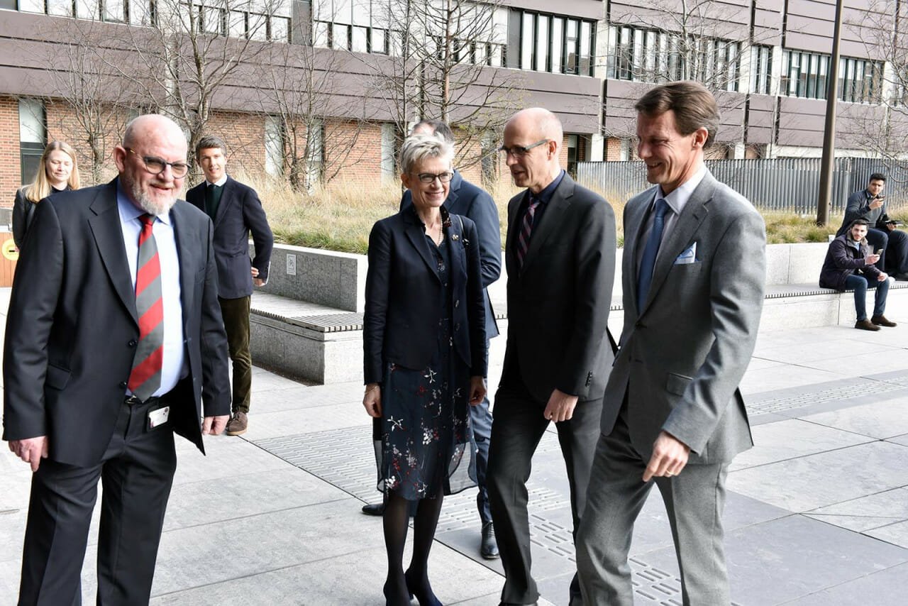De tre blev efterfølgende vist rundt i forskningscentrets nye laboratorier, hvor den ventende presse og flere af centrets forskere stod klar til at modtage dem.