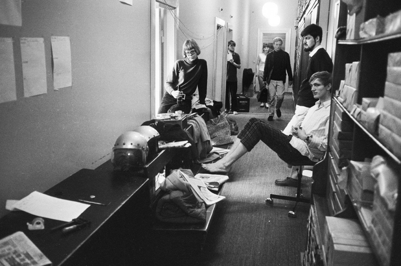 BESAT - Studerende har forskanset sig under besættelsen af Psykologisk Laboratorium i april 1968.