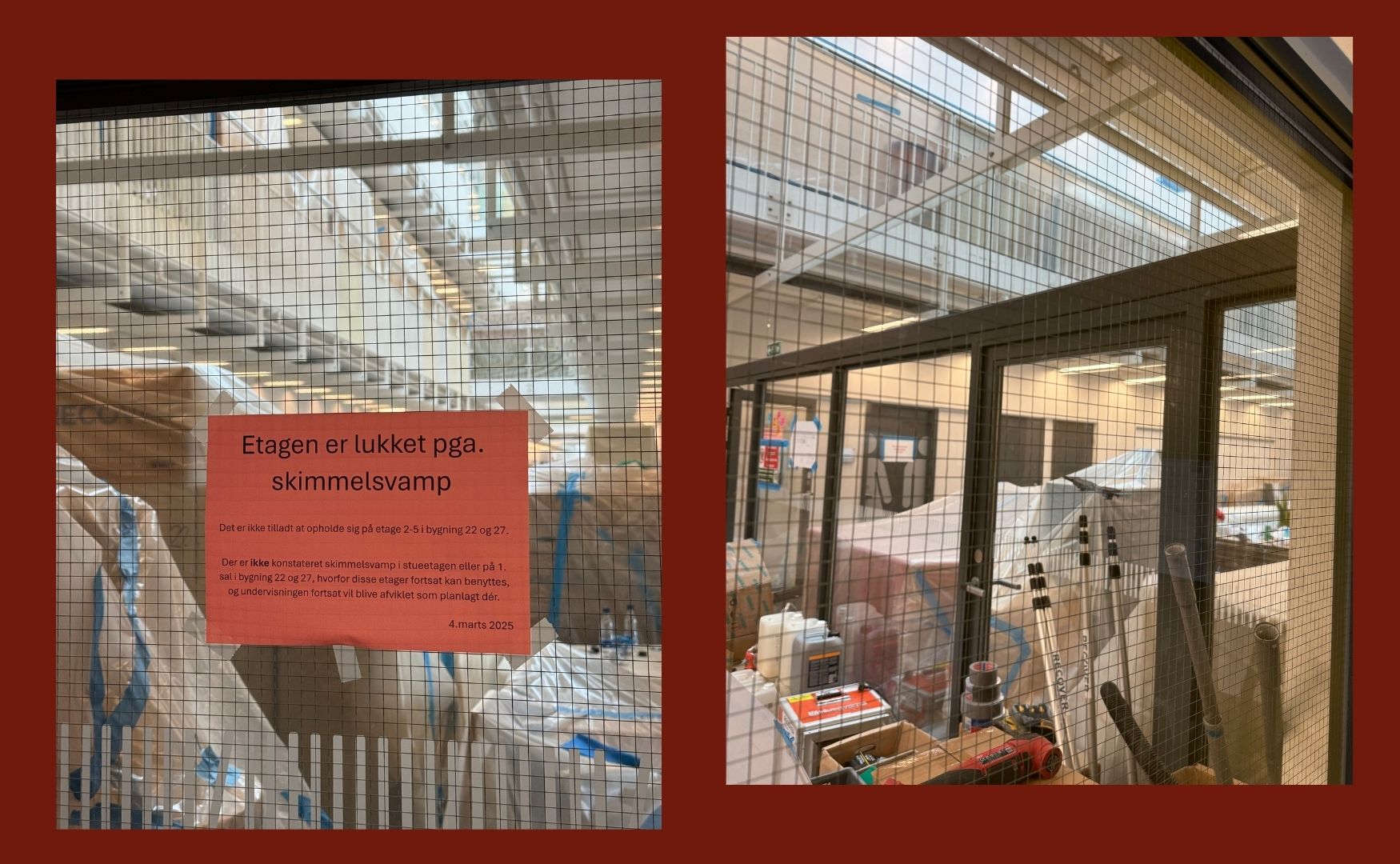 I april sidste år tikkede beskeden ind på KU’s intranet: Der var fundet skimmelsvamp i flere af de lokaler, hvor undervisningen på NorS normalt foregår. Biblioteket og etagen, hvor vores undervisere har deres kontorer, var også ramt, og i praksis betød det, at både vi studerende og vores undervisere blev sendt ud i midlertidige løsninger, mens arbejdet for at bekæmpe skimmelsvampen stod på. Et arbejde, der ét år efter fortsat er i gang.