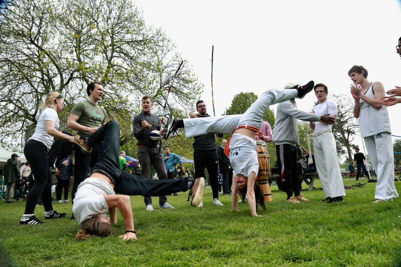 Fotoreportage — Studerende og ansatte holdt humøret oppe til Københavns Universitets Forårsfestival trods en konstant overskyet himmel, hvor regnen truede. Uniavisens fotografer fangede stemningen til koncerter, fodboldkamp, burlesque og ude på græsset og langs langbordene.