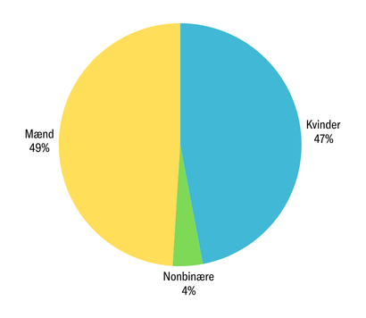 Når jeg siger stort set, er det, fordi andelen af kvinder faktisk kun er 47 procent (mens mænd står for 49 procent). De resterende 4 procent udgøres af folk, der ikke identificerer sig som nogen af delene, og som Uniavisens spalter heldigvis er rige på.