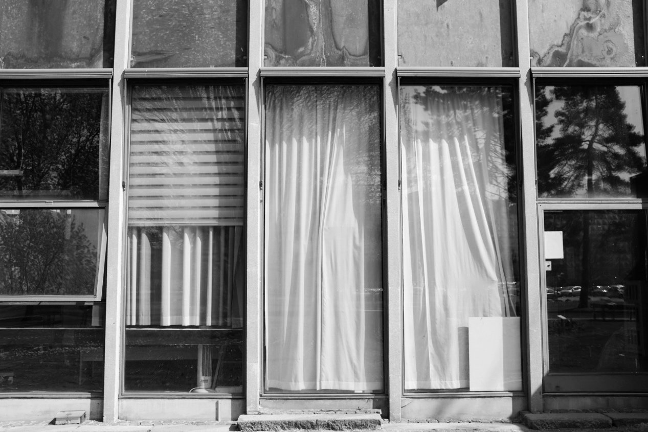 Henrik fra Campus Service er gået med mig ned i den sydlige ende af vandrehallen, hvor redaktionen holder til. Han siger, at alarmen ikke går i gang, hvis vi åbner nødudgangen, og vi får ikke problemer, så længe vi søger for at lukke den inden klokken 17. Så vi åbner den. En kølig brise og hvide blomster driver ind, og mit hoved bliver langsomt klart igen.