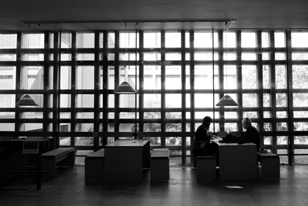 Jeg kigger misundeligt på de studerende, der har fundet vej til bænkene ude i parken. Hvide blomsterblade drysser som sne fra et træ, hvis kommende frugt jeg ikke lige kan identificere. Der er en dør bag mig, men der står, at den er en nødudgang og kun må benyttes som det. Suk.