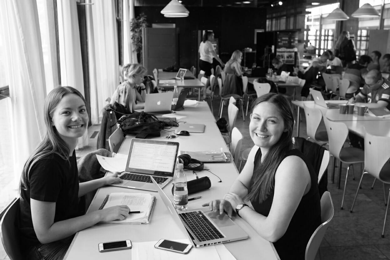 I kantinen sidder Marie og Pernille og arbejder på deres speciale. Gennem seks år er de kommet på HCØ, hvor de læser statistik.