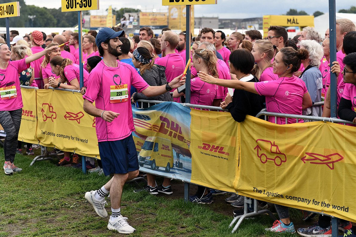 Folkefest — 2.200 medarbejdere løb sig til en ansigtskulør, der matchede løbetrøjerne, da de tilsammen tilbagelagde 11.000 kilometer ved fredagens DHL-stafet i Fælledparken.