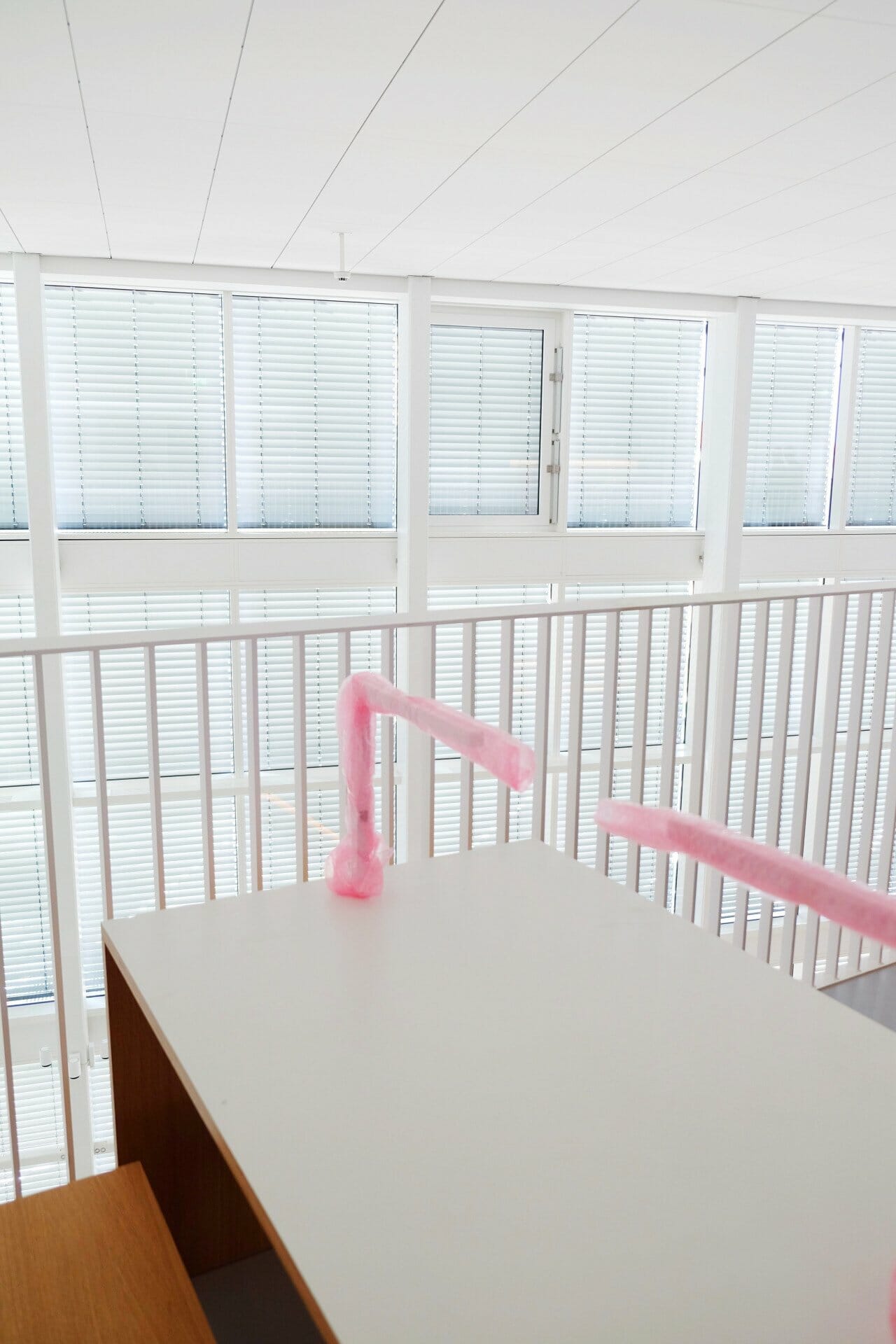 Lyserød bobleplast beskytter lamperne ved de nye lyse læsepladser.