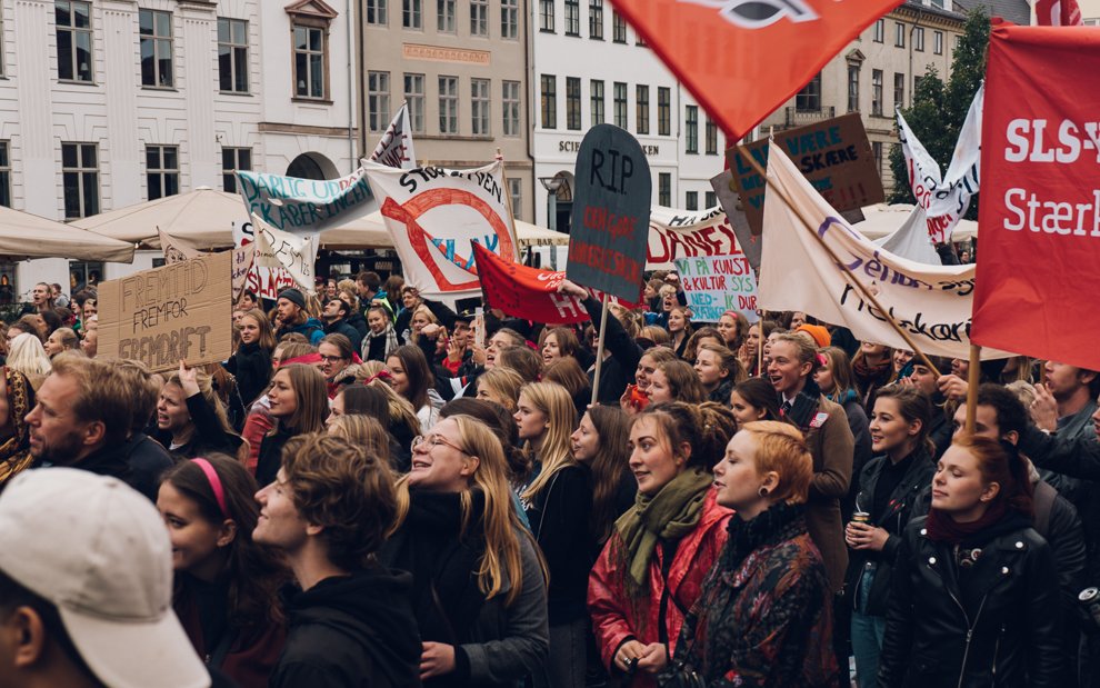 Uddannelsesalliancen samlede i omegnen af 10.000 studerende, da de torsdag den 5. oktober kaldte til protest mod VLAK-regeringens besparelser på uddannelsesområdet.