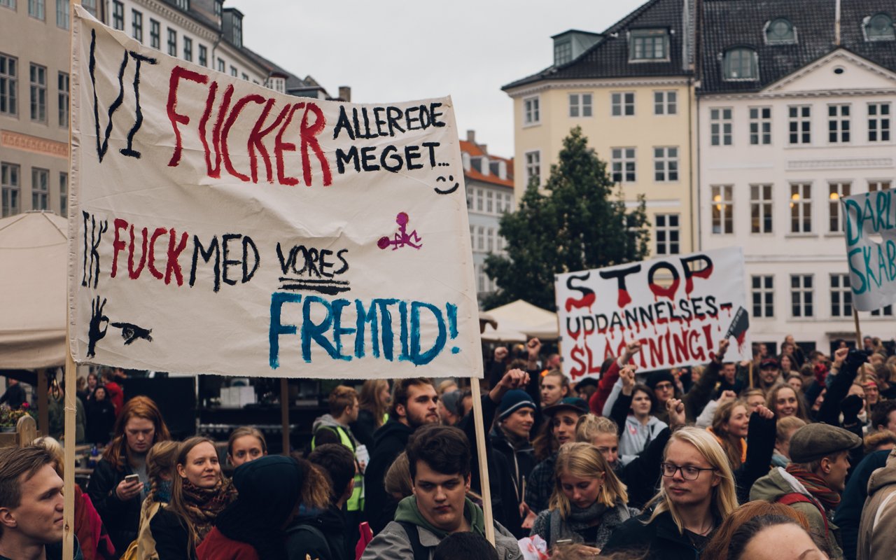 På andre bannere stod Skam dig! og Stop uddannelsesslagtning! eller Vi fucker allerede meget … [Glad smiley] Ik fuck med vores fremtid!