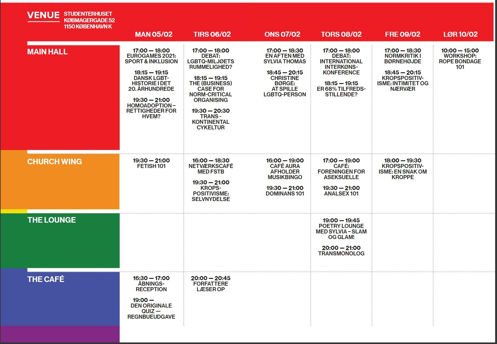 The Studenterhuset will receive visits from local and international activists, speakers, and entertainers and Copenhagen Pride promises that it will be a week full of love, rainbows and diversity.