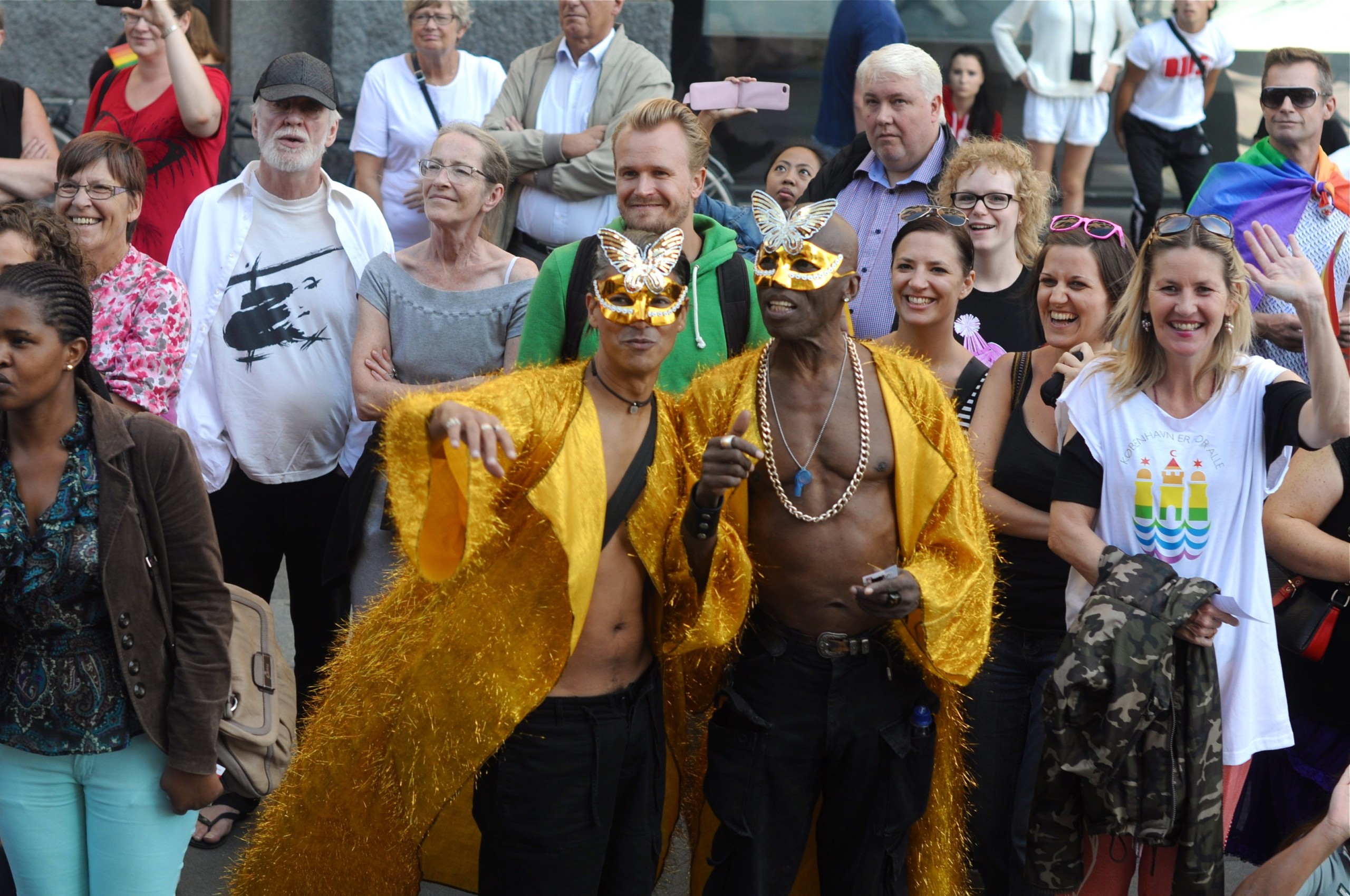 The city seems to be bubbling with support for the LGBT community, and Copenhageners are only too eager to find creative ways to show it. Dogs wear rainbow sweaters while countless children dressed as Minnie Mouse, Superman, or Fairies wave enthusiastically at the passing parade. Signs abound supporting the LGBT community and denouncing Putin (many reading ‘Vladimir Pussy’), and one store has dressed up its mannequin in a sparkling, multicoloured dress.