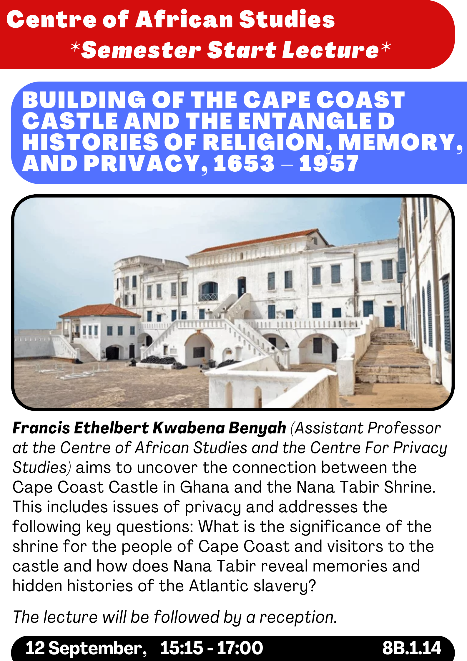 The lecture will be delivered by Assistant Professor at the Centre of African Studies and the Centre For Privacy Studies, Francis Ethelbert Kwabena Benyah. A reception will follow the lecture.