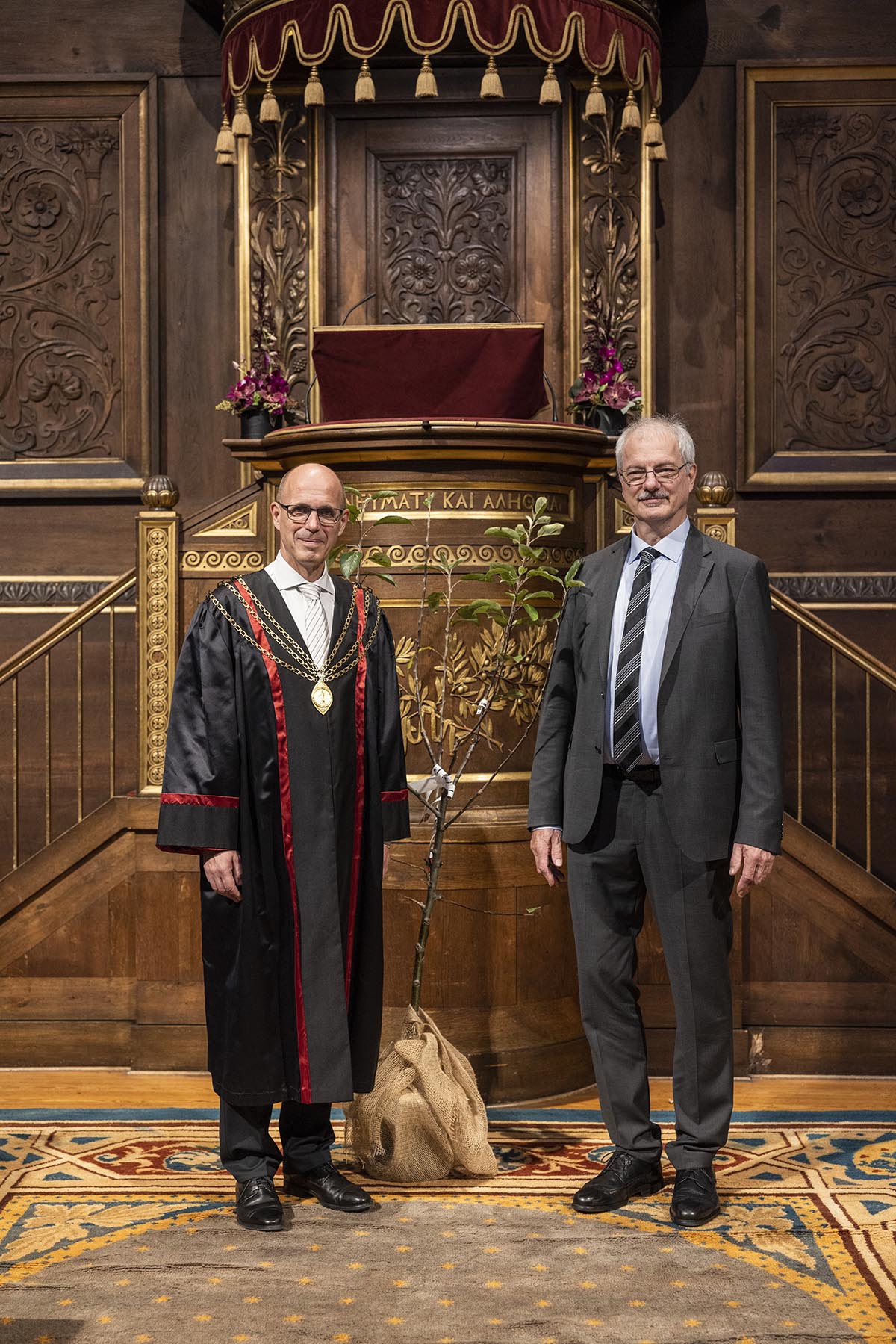 Esben Bjørn Salmonsen is the chair of the Student Council, a position that gives access to the Ceremonial Hall’s fine lectern with a Greek inscription on it that means in spirit and truth. He’s going to hold the student speech in a while. He is not that nervous, because he has spoken to large gatherings before, he says to the University Post. But he does note that this is clearly more than the beer crate from which he is used to talking from.
