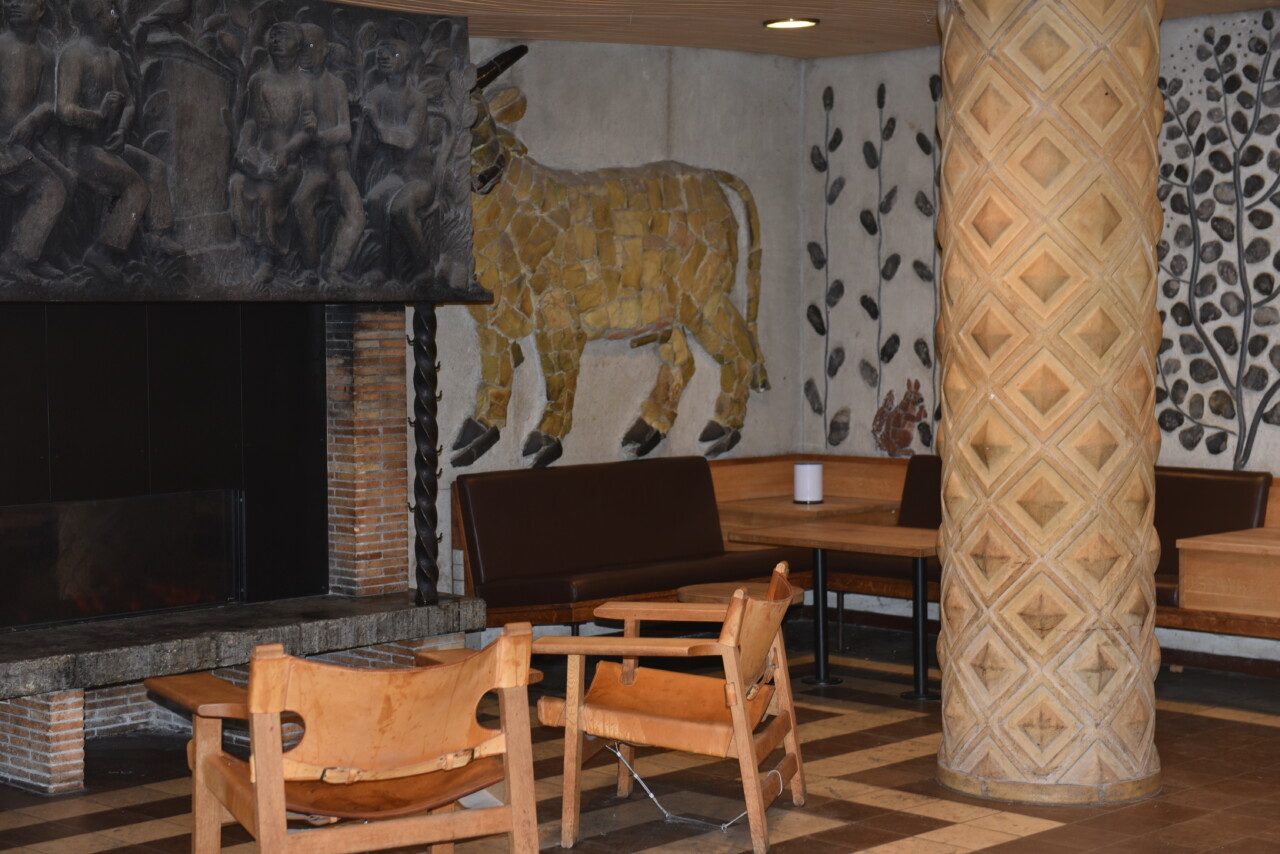 The architect Kaj Gottlob set up curved, wood-clad ceilings and carved stone pillars in the foyer when the dormitory was built in the 1950s. The rooms were to be more ‘spartan’, as Hans Peter Jensen puts it.
