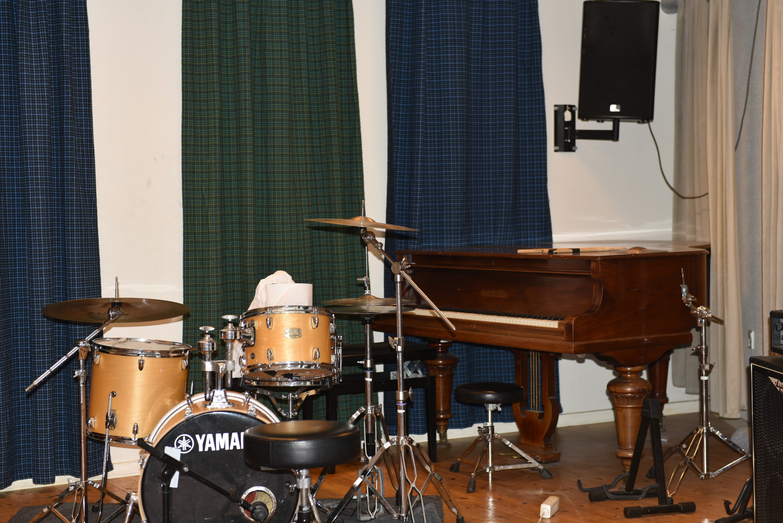 There is also a laundry room, a bike workshop, a training centre with loud music and heavy weights, and two common gardens. And there is the concert hall Musica with two rhythmic rehearsal rooms with drum sets and amplifiers, and three acoustic rooms with a piano in each. For about DKK 100 per month, you can get access to the music rooms and practise with your instrument or band.
