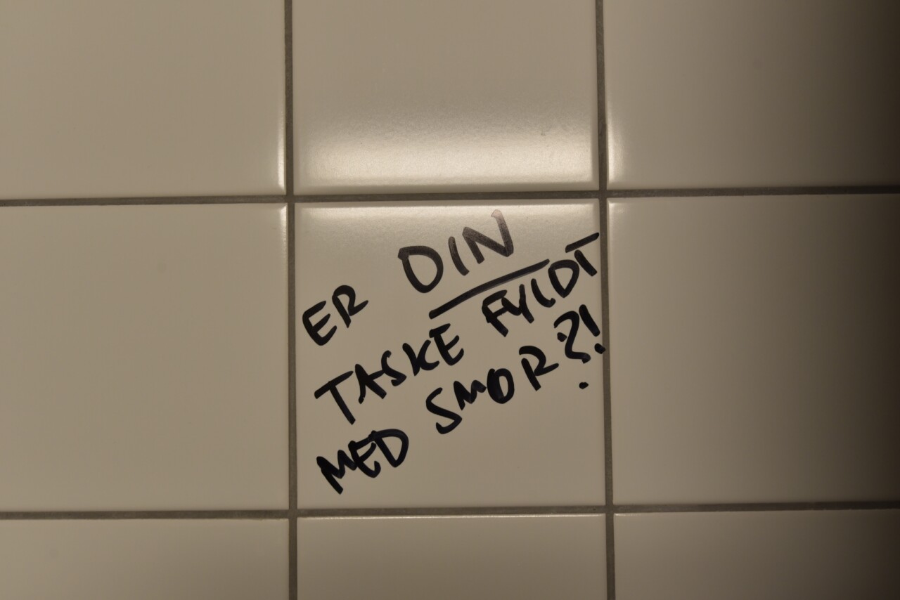 There used to be loads of identity politics in the loos. This was both long exchanges on feminism and veganism, but also more student-oriented topics like the Danish study progress reform and study techniques were also debated directly on the wall. The last time we did this was almost five years ago. So we set out to revisit the toilets, student bars, and other blank – but forbidden – canvases for the expression of thought on the University of Copenhagen’s four campuses. We were in search of the writing on the wall among students in 2024.
