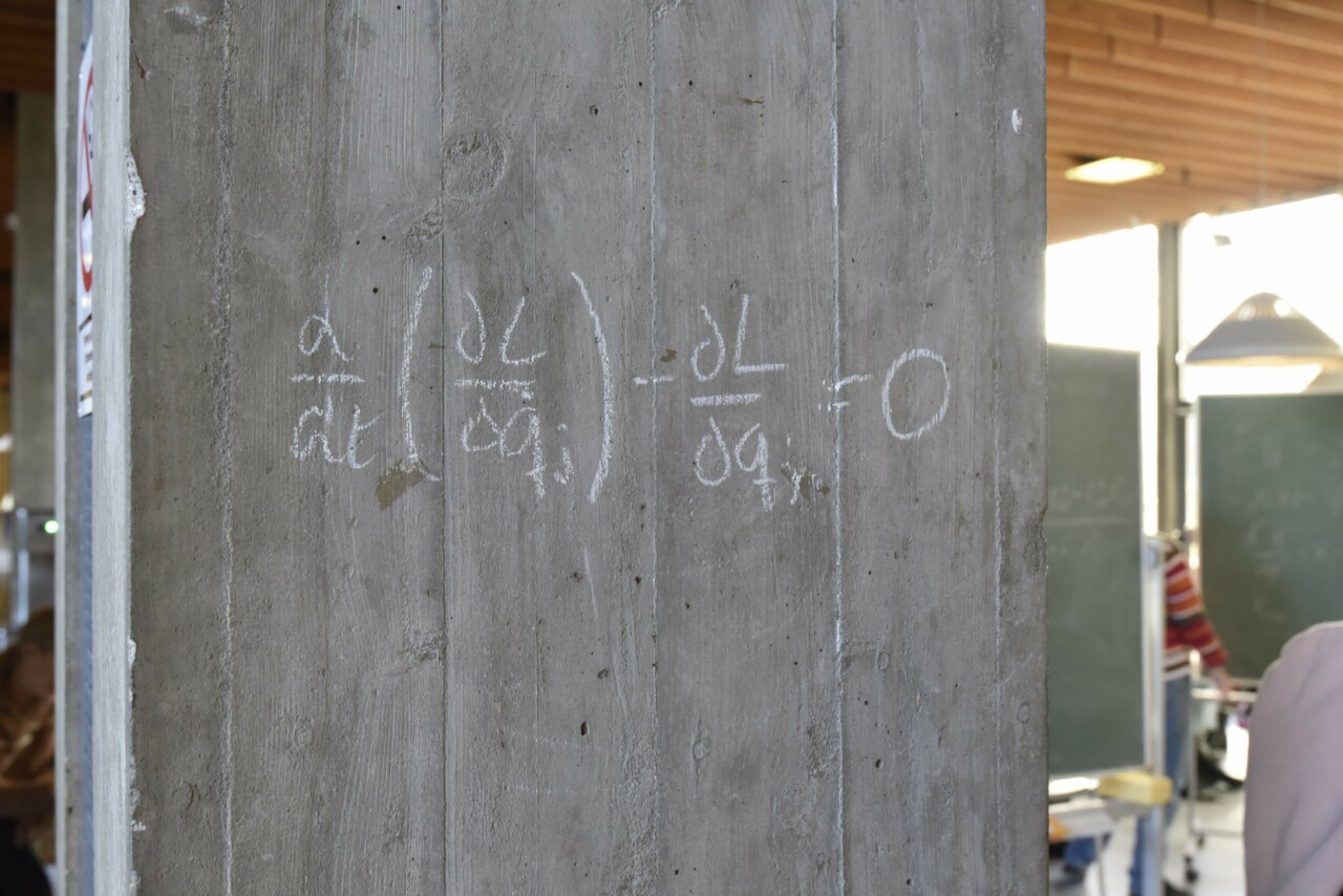 On the long corridor of the ground floor of the H.C. Ørsted Institute (HCØ) it is packed with boards-on-wheels where students practice their mathematical proofs with chalk. This has resulted in some chalk graffiti on the grey concrete that keeps the HCØ Institute together. But it was only atomic formulas and equations, and no yelps of subversion. Nothing that could not be removed with a wet cloth.
