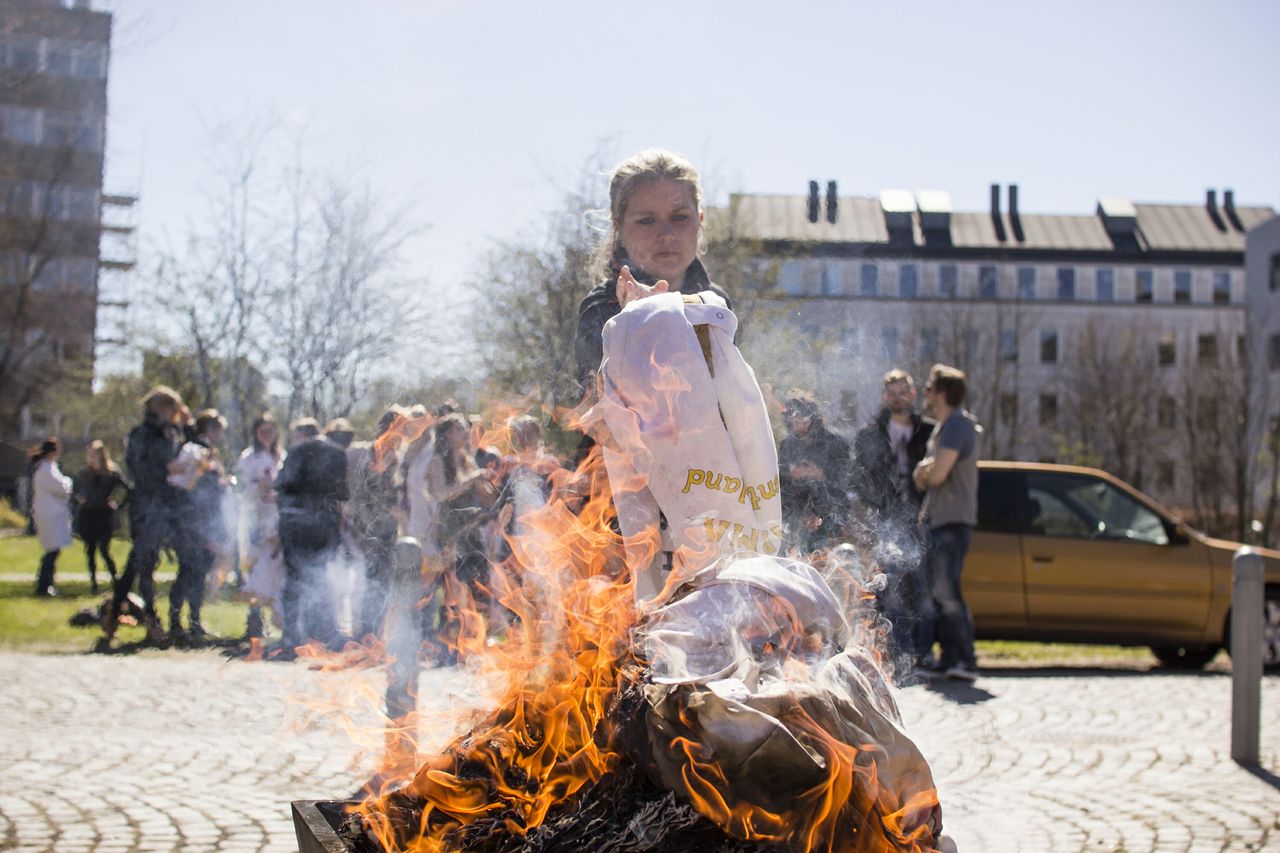 After completing three years of studies, University of Copenhagen students in pharmaceutical science traditionally celebrate by watching their lab coats disappear into a cloud of smoke