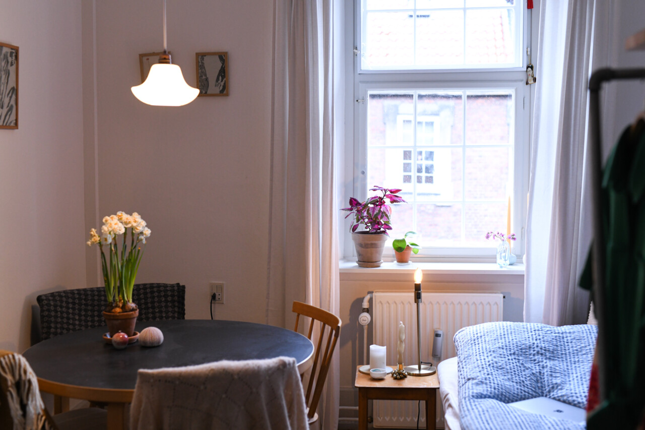 »This is both nice, and practical, because we have a really small kitchen that everybody shares, and you have to mingle around each other. That’s why it’s great when a person is in charge of the food,« says Signe Ulvsgaard Sørensen and laughs. She recently moved into the dormitory and is studying philosophy at the University of Copenhagen.