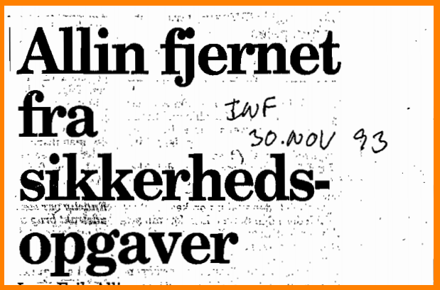 Meddelelsen kom, efter Allin havde indrømmet et hemmeligt samarbejde med PET. Og meget tyder på, at det ikke var den eneste hemmelighed, sikkerhedschefen bar rundt på.