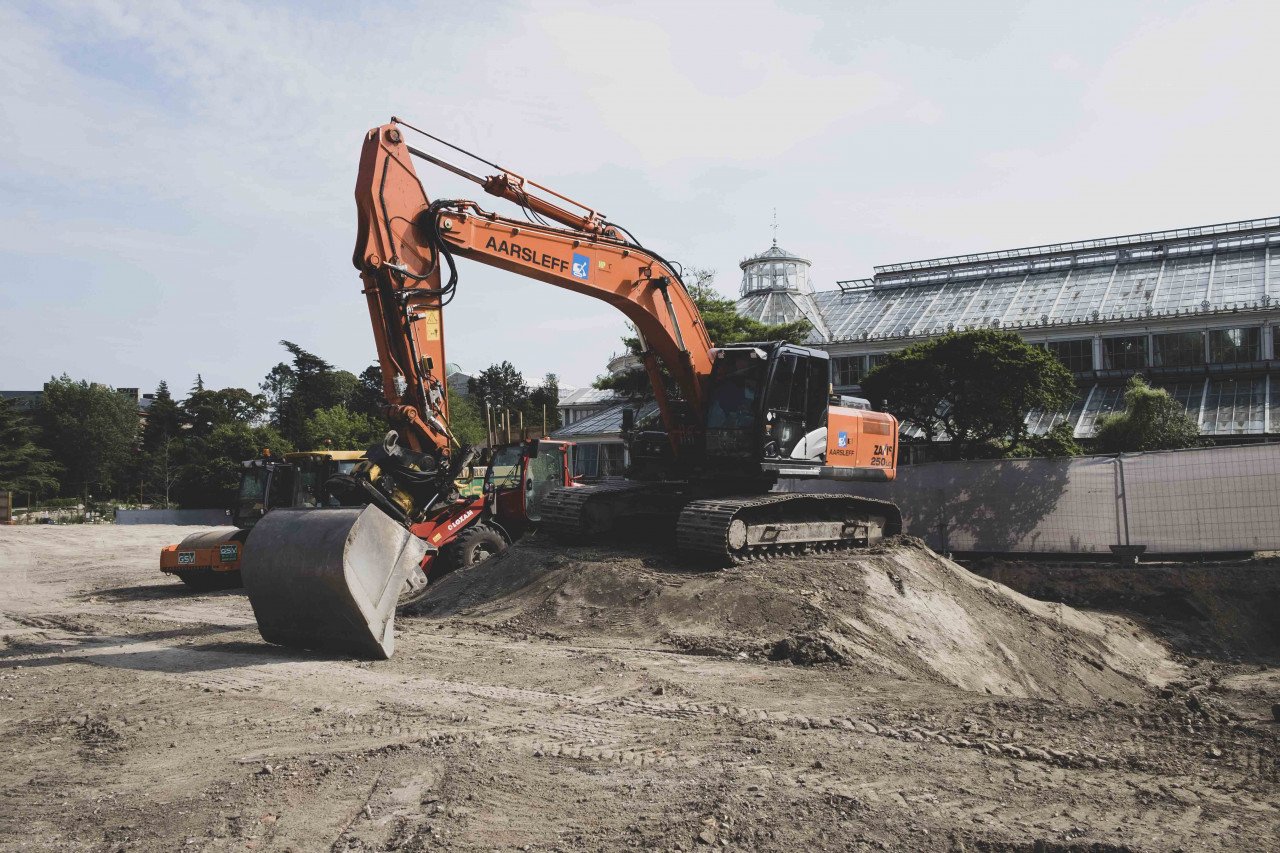 I hvert fald officielt. Området er i løbet af det sidste halve år blevet ryddet for de græsbakker og syrenbuske, der engang voksede her som del af Botanisk Have. Nu er der lagt grus og gjort klar til, at håndværkerne kan grave fjorten meter ned i jorden og gøre plads til store, underjordiske udstillingslokaler.