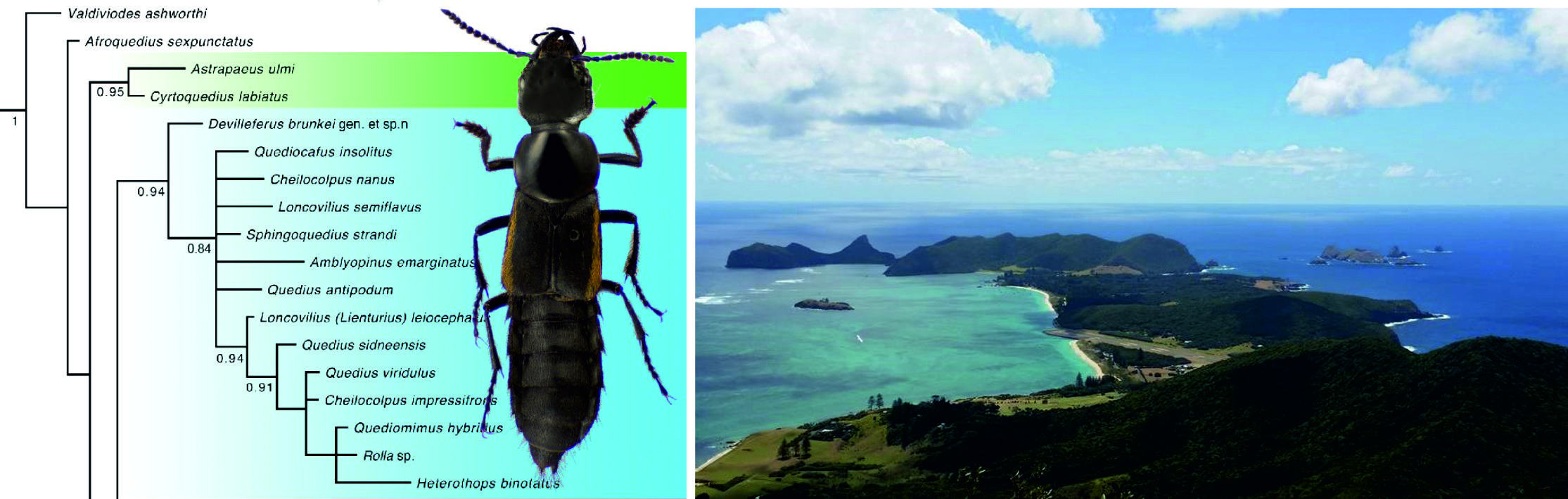 During a 3 year PhD it is not easy to study all 60,000 species and therefore my project focusses on the subtribe Amblyopinina, a group of over 400 species mostly found in the south temperate regions of the world (Australia, New Zealand, New Guinea, South Africa and South America). Amblyopinina rove beetles form dominant components of leaf litter and other ground-based habitats in those regions, where they predate on other small insects. In South America and Australia some species have an unusual relationship with mammals, with the beetles occurring in the mammal fur and apparently feeding on the mammal ectoparasites. The distribution of Amblyopinina as well as the evolution of mammal association make them an intriguing group to study. However, before the group can be used for studies of biogeography of evolutionary biology, a stable classification of the subtribe is required. I studied the morphology of adult beetles across the subtribe to infer relationships among genera and species. The results indicate the misplacement of many species in incorrect genera, and several new genera and many new species that must be described in due course. Based on existing knowledge I was able to describe two new species from Lord Howe Island and also review the biogeography of the island, in the context of rove beetle diversity. Furthermore, our growing knowledge of Amblyopinina allowed us to describe a remarkable and rare new genus and species, Devilleferus brunkei, from the tropical Andes of South America. We investigated its phylogenetic placement within the tribe Staphylinini based on morphological data resulting in its placement in Amblypoinina. Molecular (DNA) data is currently being gathered to further investigate the classification of the group and to provide a baseline for a future dated phylogeny which may be used to answer all manner of questions.