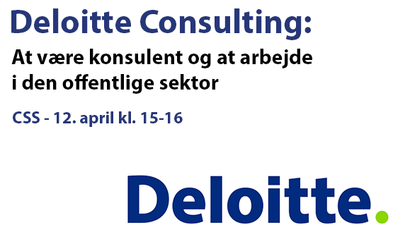 Vi holder dette arrangement for dig, der er interesseret i en karriere inden for konsulentbranchen eller bare er nysgerrig efter at høre om mulighederne for at arbejde med den offentlige sektor som konsulent. Til arrangementet vil nyuddannede konsulenter fra Deloitte Consulting give dig et indblik i vores daglige opgaveløsning og en smagsprøve på de typer af projekter, Deloitte løser for kunder i den offentlige sektor. Du vil samtidig blive klogere på, hvordan man som samfundsvidenskabeligt uddannet anvender sine kompetencer som ansat i et konsulentfirma, og hvad et konsulentfirma som Deloitte kan tilbyde dig i forhold til din faglige udvikling.