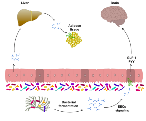 The regulation of energy homeostasis is a complex process influenced by many dietary factors and by the cross-talk between the host and microbiota.