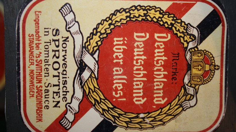 Under første verdenskrig profiterer virksomheder i det neutrale Norge på salget af konserves til de kæmpende magter. Fra at være en luksuriøs vare, bliver norske sardiner på dåse et produkt, der også indgår i feltrationerne. Sardindåsernes pakning bliver udstyret med farvestrålende billeder, der udgør et lille, men dog interessant hjørne af krigspropagandaen. I den tyske marine kan man se engelske krigsskibe blive sænket, og i den engelske marine kan man se sejrrige engelske krigsskibe; men sardinerne er de samme.