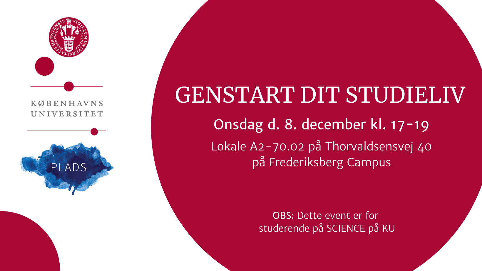 Eventet er kun for studerende på SCIENCE på Københavns Universitet og er arrangeret af PLADS i samarbejde med SCIENCE Studenterservice.