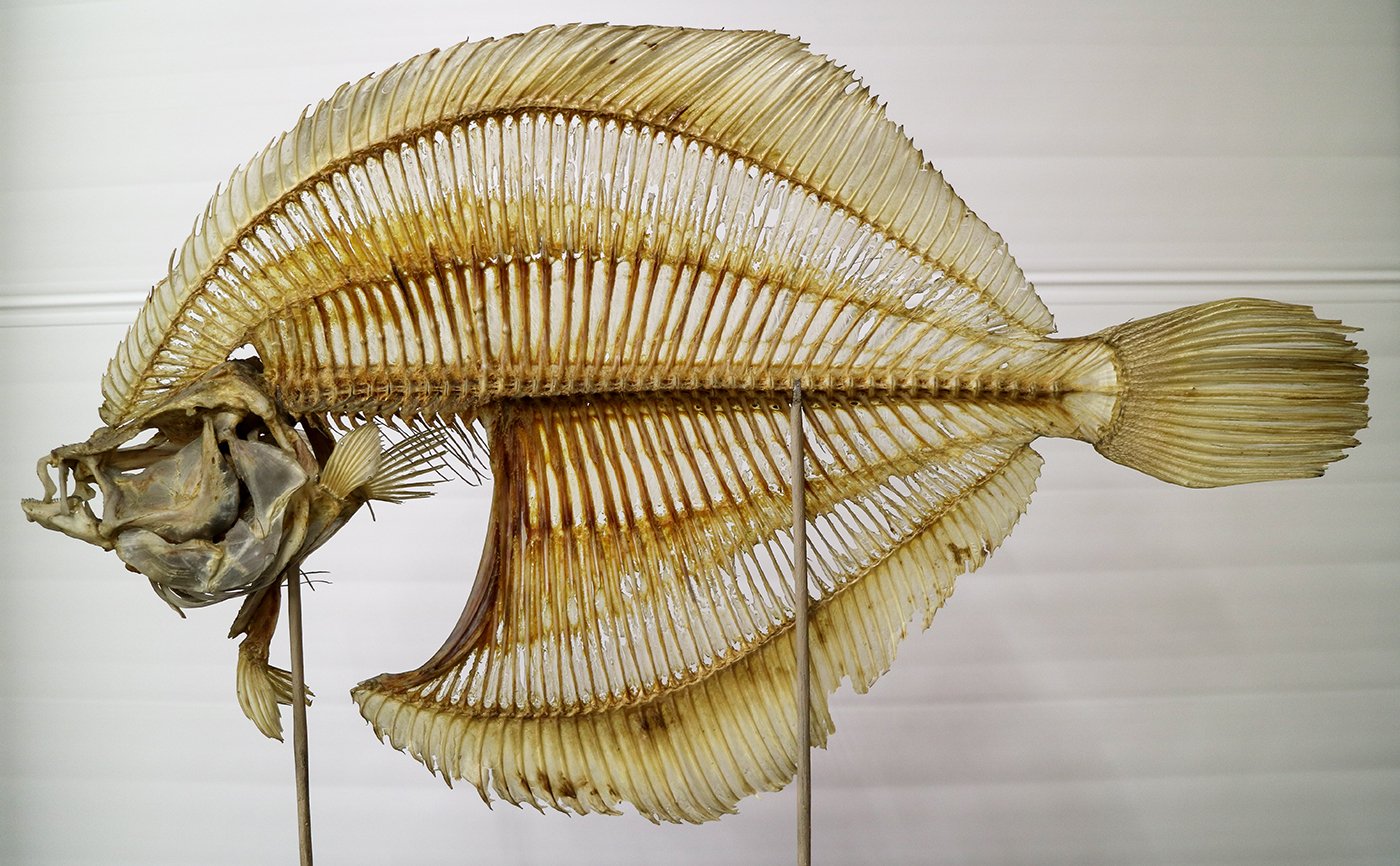 Hvordan ser en rødspættes skelet egentlig ud i sin helhed – og en knurhanes? I vinterferien har vi lånt forskellige fiskeskeletter fra Zoologisk Museum, og flere af fiskene kan du også se i levende live i vores akvarier.