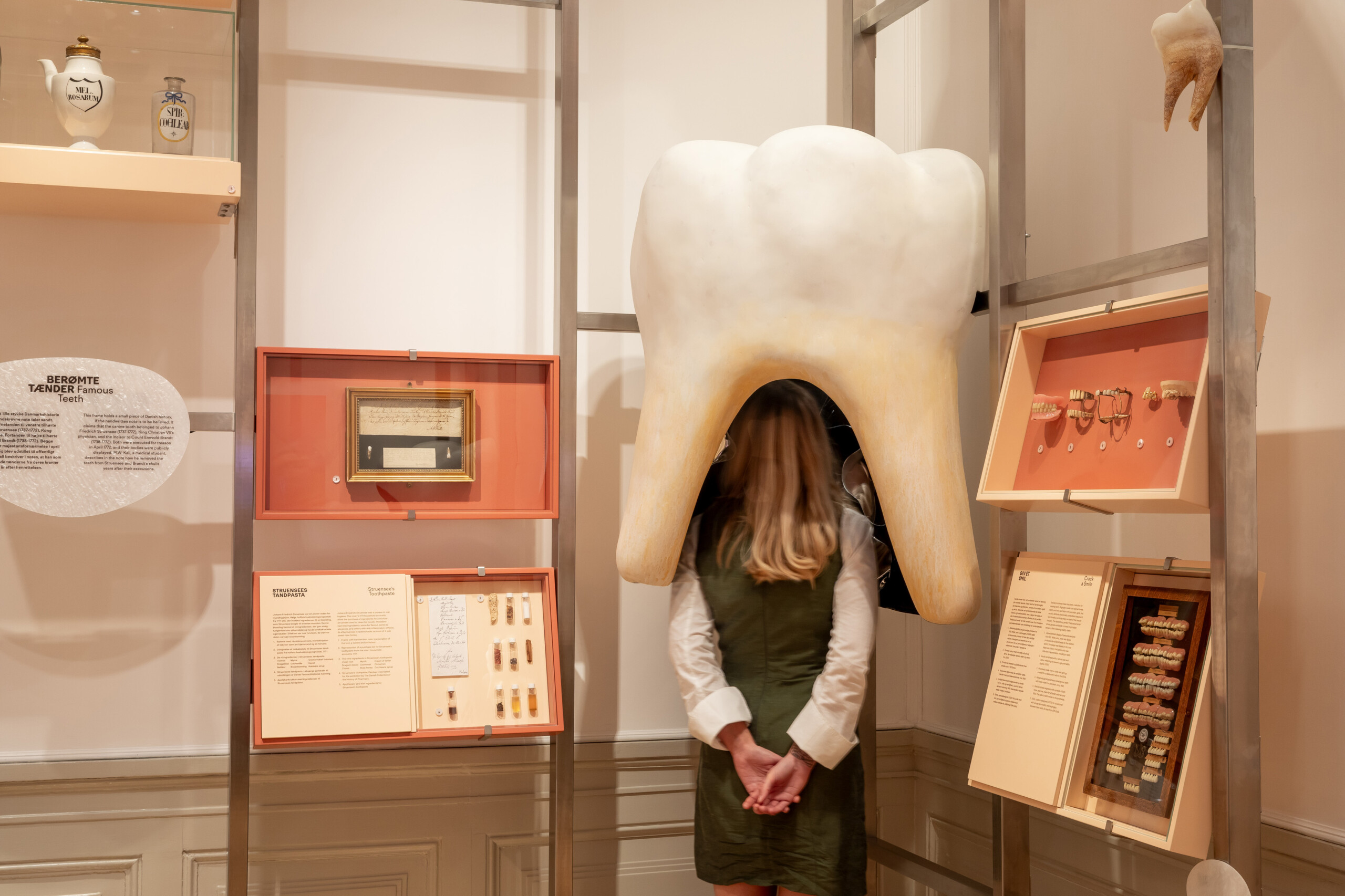 Anne Bernth Jensen giver en introduktion til udstillingen med udvalgte nedslag i historierne bag genstandene. Derefter åbner hun døren til en ellers aflukket samling: Medicinsk Museions stemningsfulde tandlægesamling, der befinder sig under loftet. I de gamle rum gemmer sig over 5.000 sjældne genstande – fra gamle tandlægestole og instrumenter til bøjler og proteser fra flere århundreder.