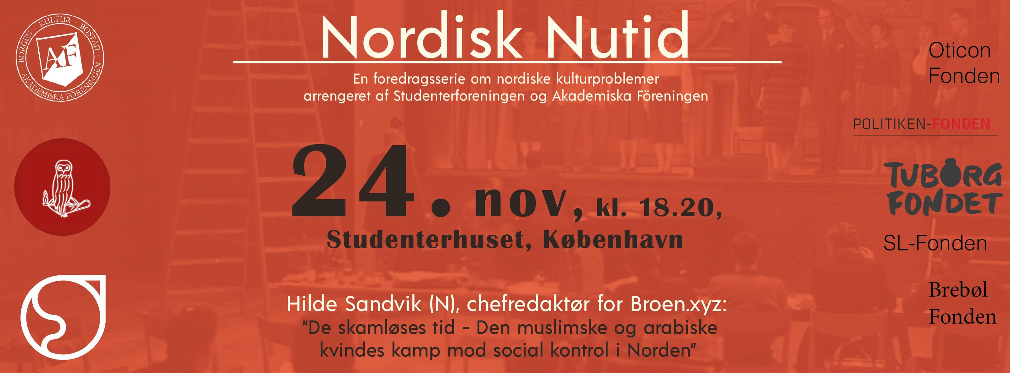 Studenterforeningen og Akademiska Föreningen er klar til at byde velkommen til fjerde og sidste omgang Nordisk Nutid på Studenterhuset i København, hvor Hilde Sansvik (N) vil indtage talerstolen. Hvilke kulturkampe og problemer eksisterer i de nordiske lande? Eksisterer der overhoved nogen som helst? Dette er spørgsmål vi har stillet til seks talere fra de nordiske lande, som vil give deres svar ved fire arrangementer i Lund og København.