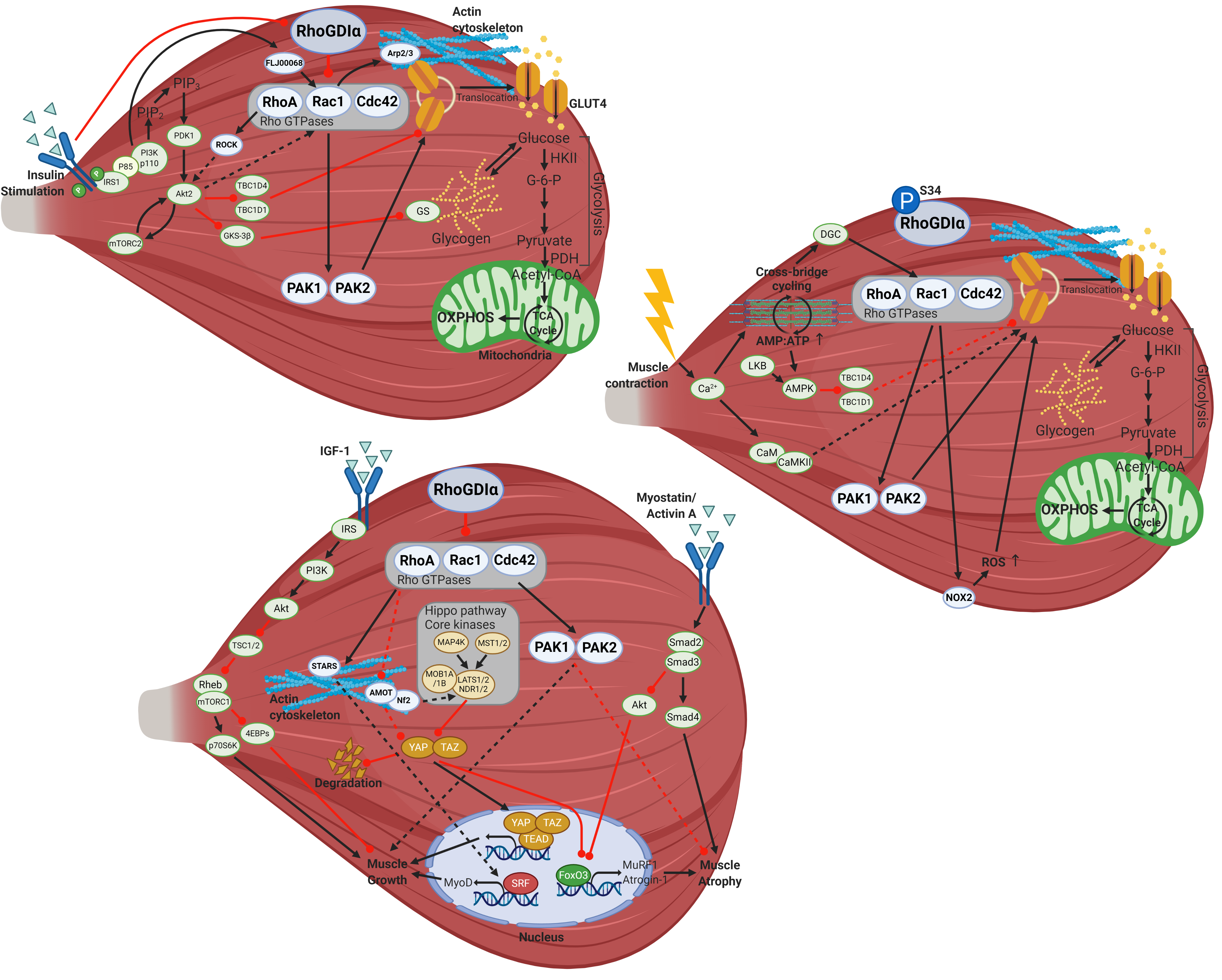 Interestingly, it was found that RhoGDIα is also important for muscle mass. Lastly, glucose uptake in response to insulin and muscle contractions was found to partly depend on PAK2, but not PAK1, in mouse muscle.