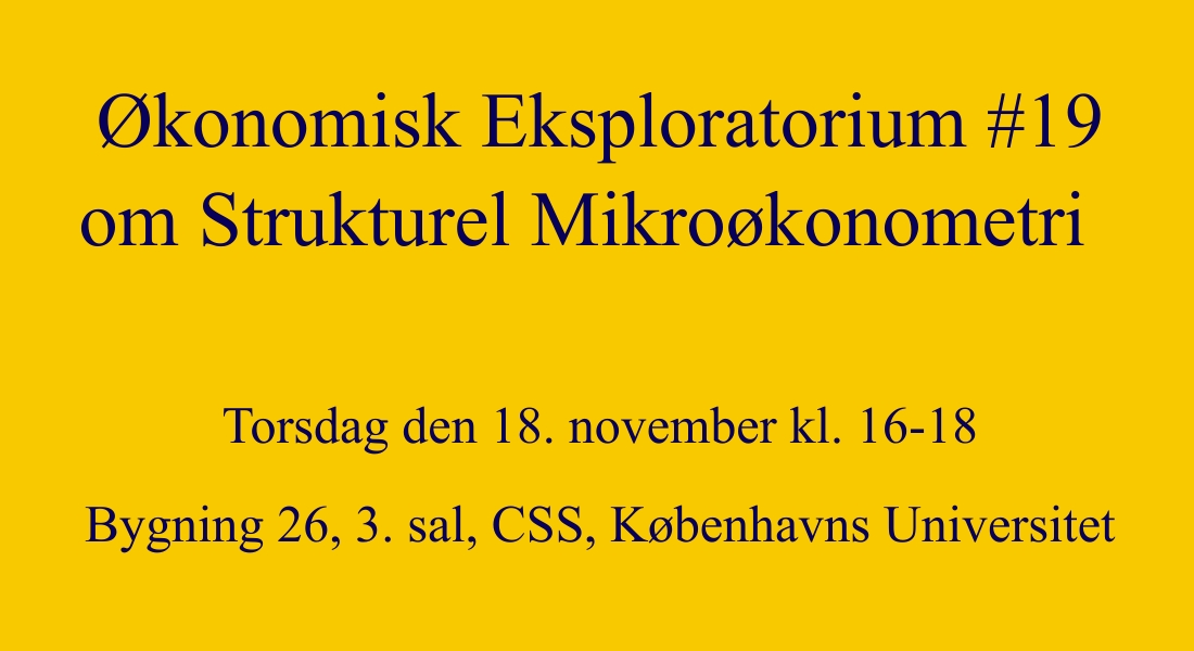 Seminar — Synes du nogle gange, at der er langt fra de teoretiske modeller til virkelighedens verden? Og har du også undret dig over, hvordan din viden om nyttefunktioner og ligevægtsmodeller fra mikroøkonomi kan anvendes på data i en økonometrisk model? Og hvordan forudser man konsekvenserne af en reform, som er uden historisk fortilfælde? Svaret er strukturel mikroøkonometri, som vi dykker ned i ved næste Økonomiske Eksploratorium torsdag den 18. november kl. 16-18 på 3. sal i Bygning 26.