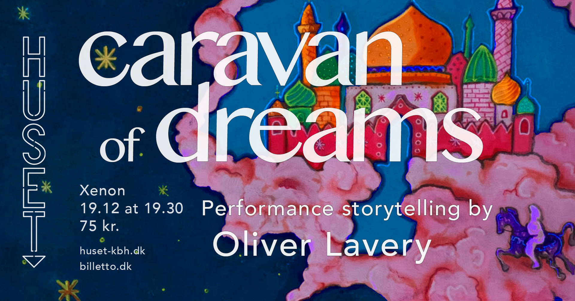 Øvrige — Performance storytelling returns to HUSET this Yuletide. Join Oliver Lavery (UK) for a magic carpet ride into the heart of the Arabian Dreamtime.
