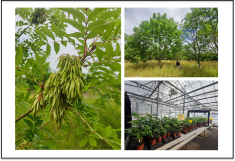 In Manuscript I, I hypothesized that mother ash trees disperse different sets of mycobiomes via their seed wings. The rationale behind testing the hypothesis was to better understand the early dispersal of the seed mycobiome of ash trees with different levels of ash dieback susceptibility. In common ash, the function of the samara is to enhance seed dispersal and it is spread together with the seed itself, while most of the seed stalk remains on the mother tree. The seeds were collected from two genotypes of common ash. The endophytic fungal community of seed wing and stalk were profiled and analyzed with ITS1-based amplicon sequencing in this manuscript. Seed wing had a higher richness than seed stalk within genotypes, while neither the diversity between the mycobiomes from the two tissue types nor the two genotypes were significantly different. Furthermore, the mycobiome composition differed between seed wings of the two genotypes, while seed stalks were not significantly different. Therefore, the results suggested that F. excelsior mother trees dispersed different sets of endophytic fungi through their samaras.