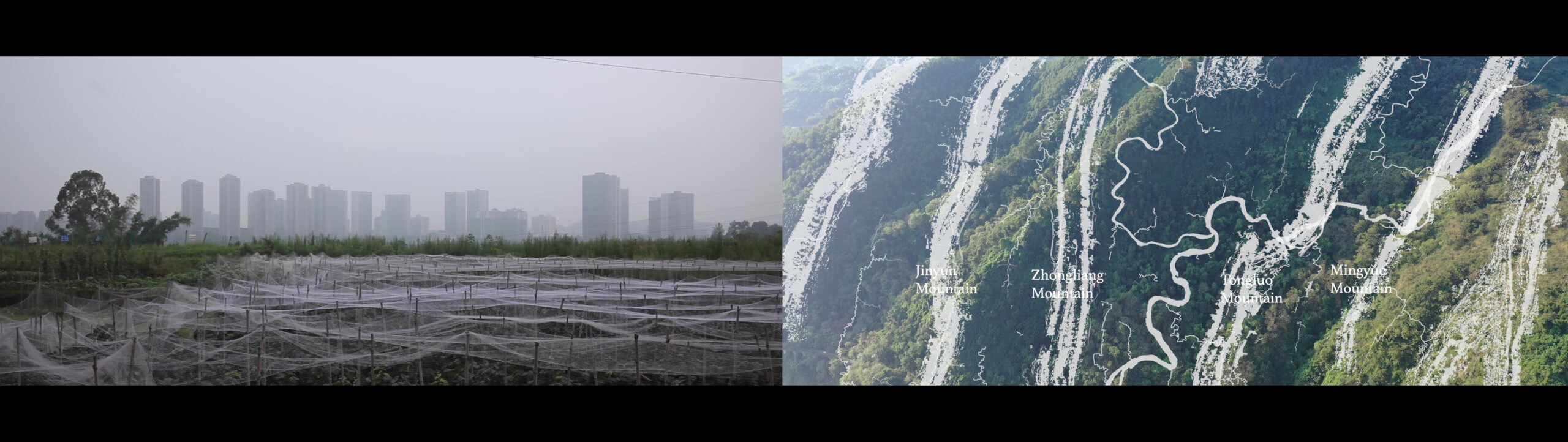 This PhD research focuses on the rural–urban interface (desakota) in Chongqing, China, a region characterized by rapidly transforming landscapes, ecological degradation and socio-spatial inequalities. The landscapes of the desakota area around Chongqing consist of unique mosaic assemblages of forest, mountains, valleys and 90-degree perpendicular rivers crossing the mountain ridges, providing the basis for a particular nature–culture ecological intertwinement that has supported human habitation for centuries. Currently, the central government is focusing on creating a ‘one-hour’ economic zone – containing areas within a one-hour drive from the city centre – perpetuating a city-centric, hierarchical approach to urban development while continuing to neglect the horizontal and diffused urbanization that characterizes these wider landscapes. This research primarily focuses on four topics: the emerging desakota urbanity in the transitional territory; the interactions of water, soil and habitation; the role of vernacular landscape systems (Beitang) in the desakota region; and the potential of visual research methodologies (filmmaking, mapping and diagramming) for researching desakota regions and fostering a new, caring planning vision.