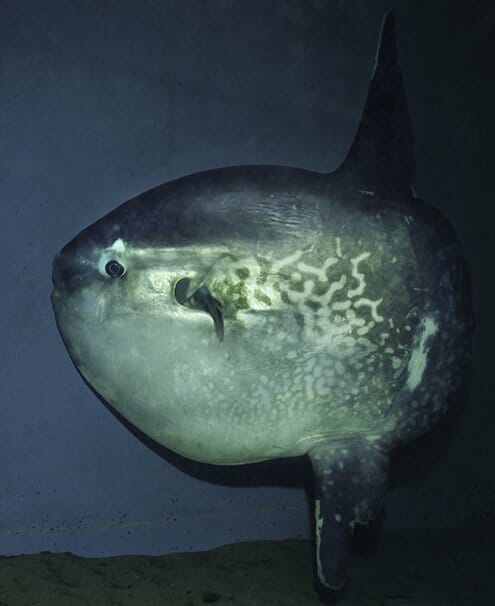 – Den er en lidt anderledes fisk, og mange kan ikke stå for dens lidt klodsede facon og trutmund. Den kan faktisk kan blive helt op til 4 meter fra finnespids til finnespids, så det er en af havets kæmper, vi her sætter spot på.
