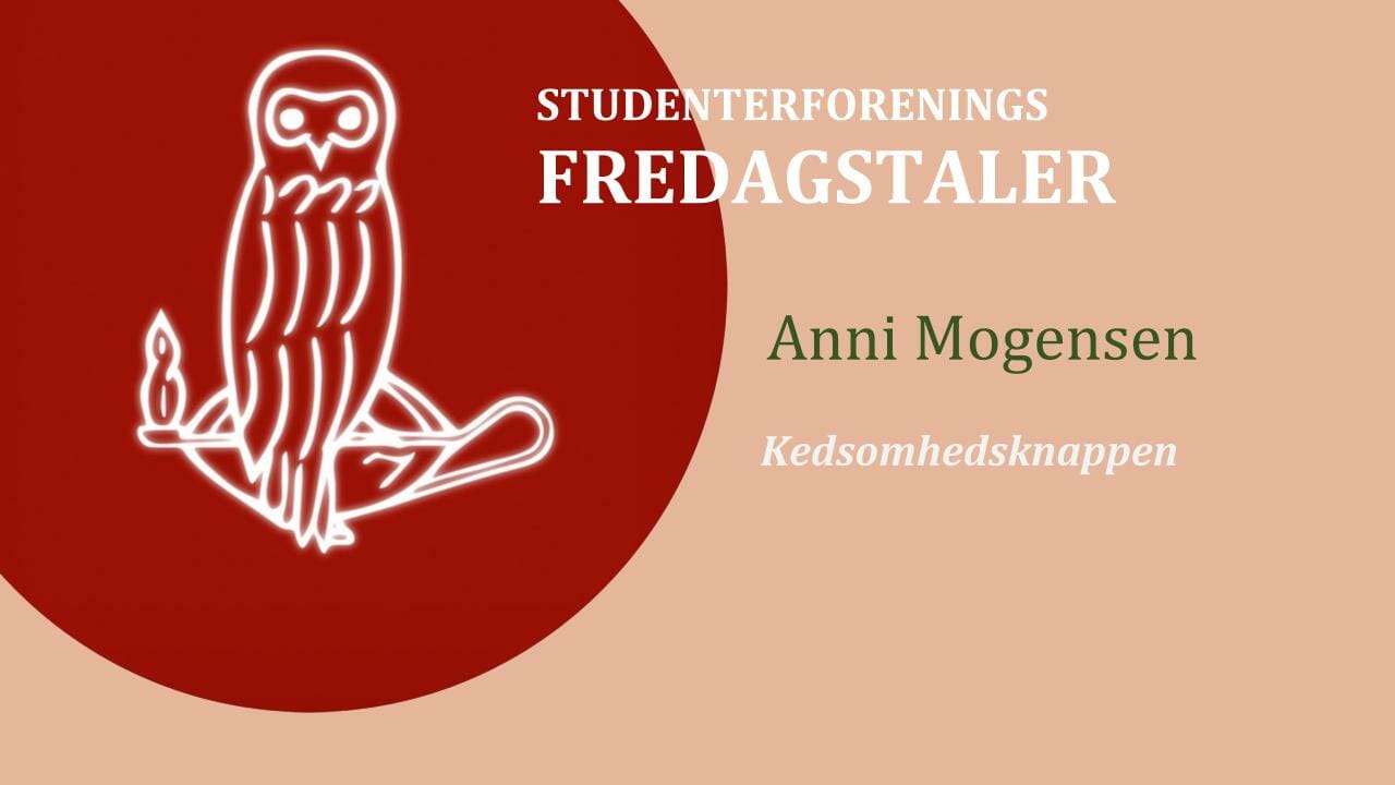 Anni Mogensen er uddannet cand.mag i retorik og samfundsfag fra Københavns Universitet, og er i dag Museumschef for Nationalmuseet. Hun har det seneste år været med til at implementere den efterhånden landskendte ‘Kedsomhedsknap’ på Nationalmuseet. Anni Mogensen vil tale om knappens indflydelse og grundene til at Nationalmuseet valgte at indføre den.