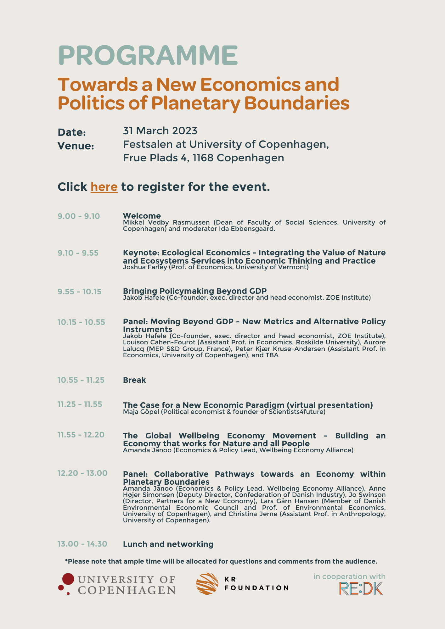 Konference — How do we reorganise our politics and economy under a new economic paradigm that recognises the economy as embedded in nature and society?