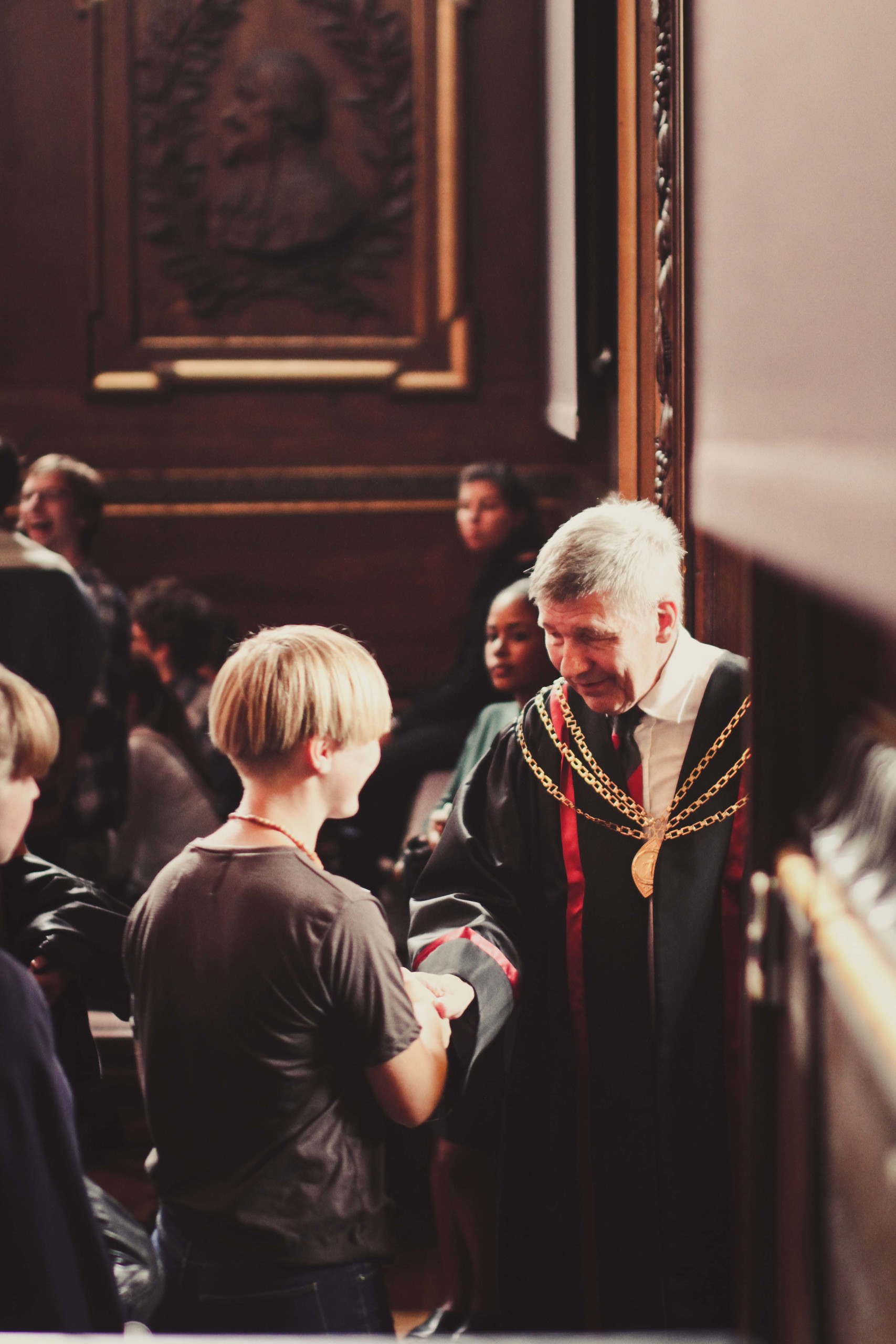 Vi har også fået en sms fra en studerende, som bare var glad for at befinde sig i Københavns Universitets stemningsfulde, brune festsal: