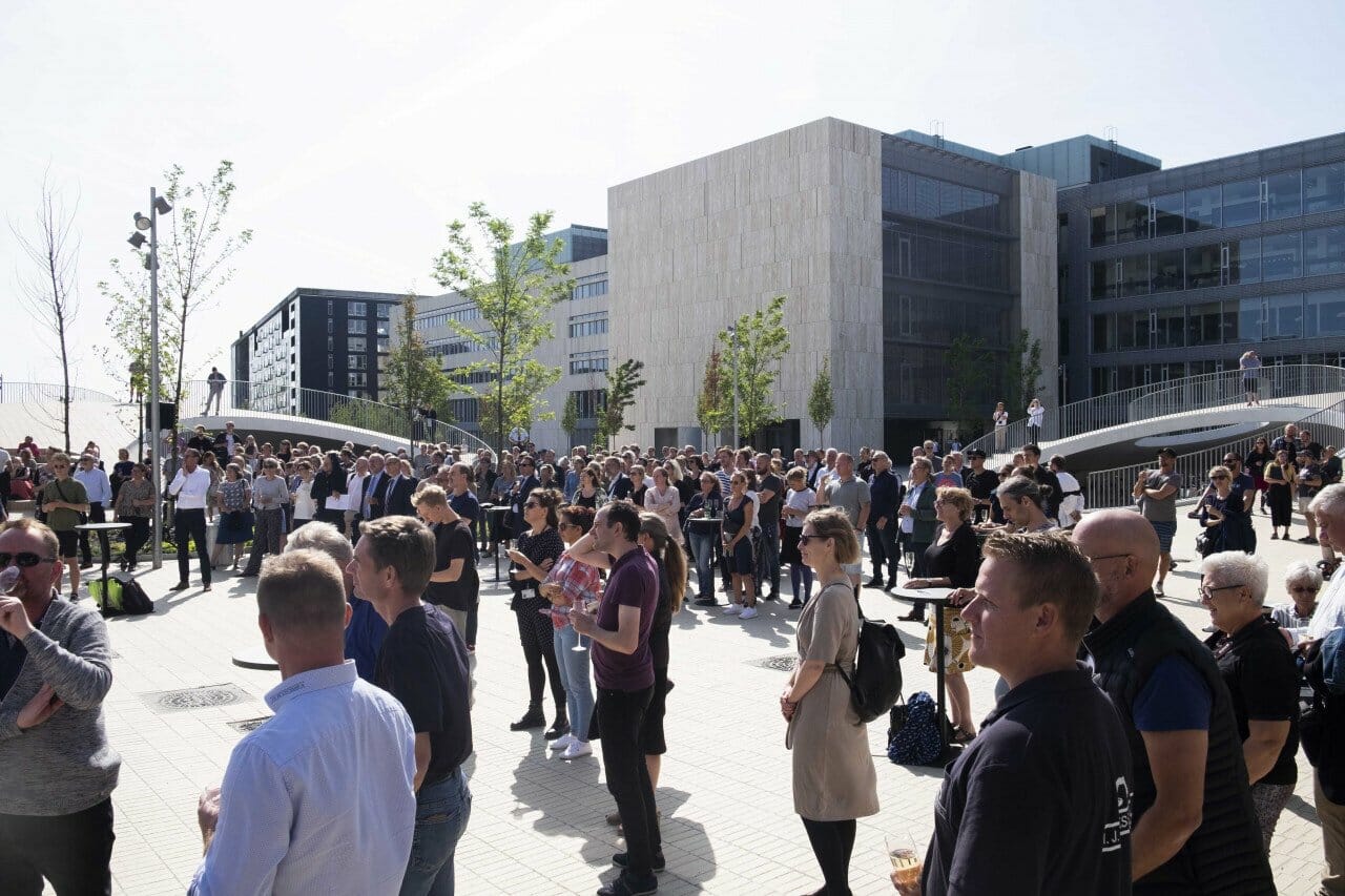 At de rødbrune 70’er-bygninger alligevel endte med at være midlertidige lader til at vække stor glæde på denne dag på Søndre Campus, der med åbningen af Karen Blixens Plads har fået sat sit punktum.