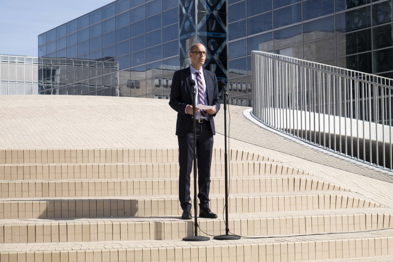 »I dag indvier vi den allersidste etape på det meget store arbejde, det har været at forandre universitetsmiljøet herude på Amager,« siger arkitekt Dan Stubbergaard. Han står bag Karen Blixens Plads, der denne dag indvies.