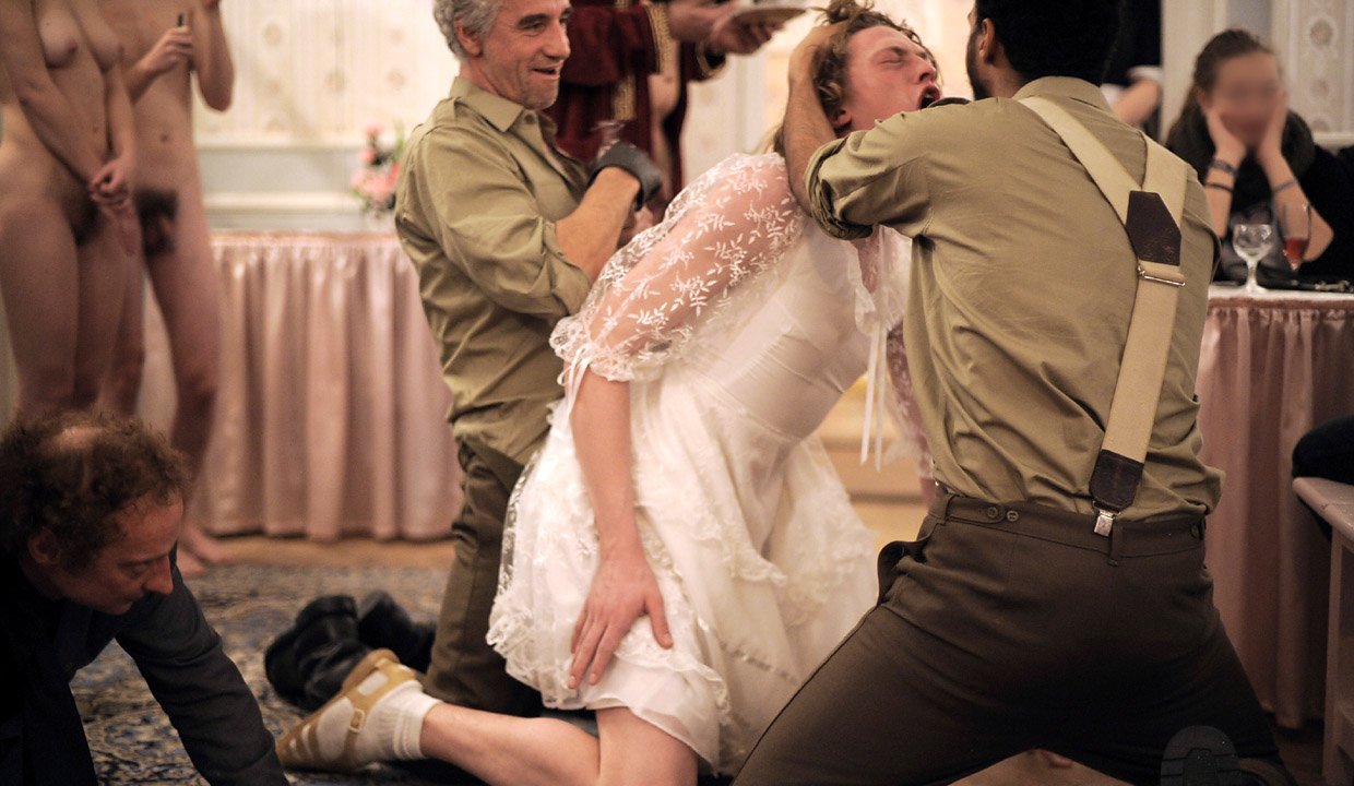 Teaterdirektør og international leder af Republique HC Gimbel byder velkommen, og han slår ud med armen, da han bedyrer, at Salò er blevet kaldt tidens vigtigste kunstværk.