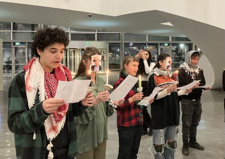 »Klimaretfærdighed handler om menneskerettigheder. Og lige nu ser vi en humanitær katastrofe udfolde sig i Palæstina. Så alle, der har den mindste form for empati og menneskelighed tilbage, bør bruge sin stemme til at kræve, at folkemordet stopper.«
