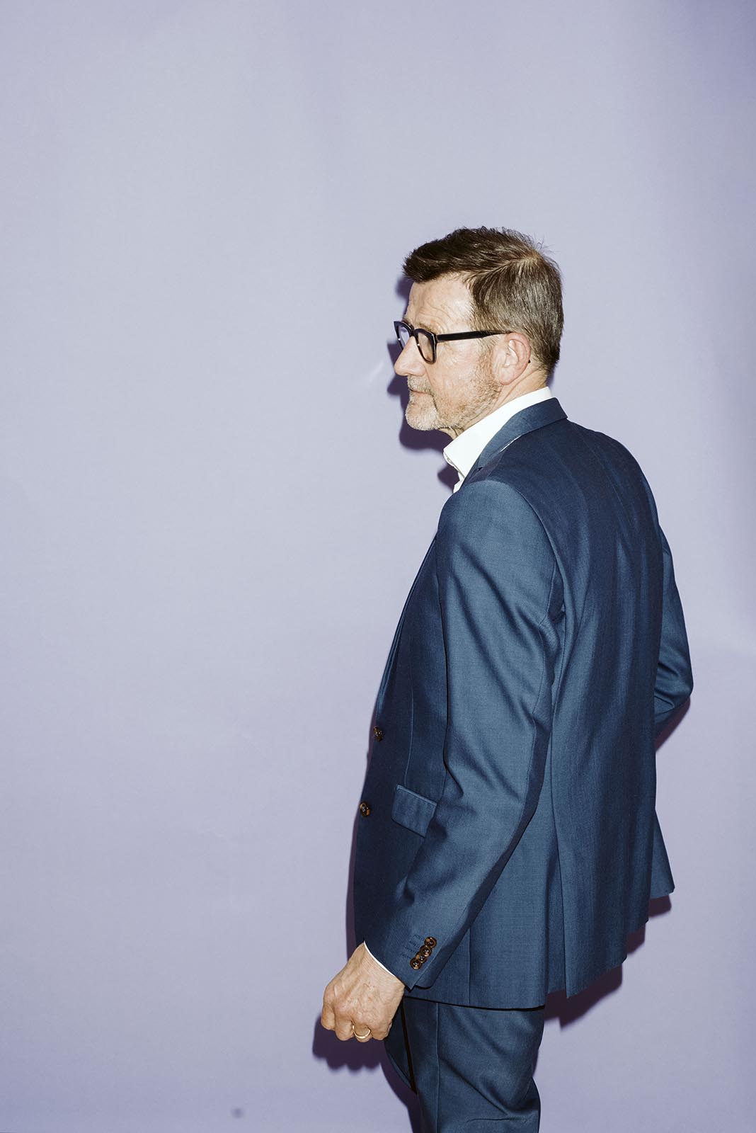 Helge Sanders øjne lyser op bag designerbrillen, mens han taler om Melodi Grand Prix.