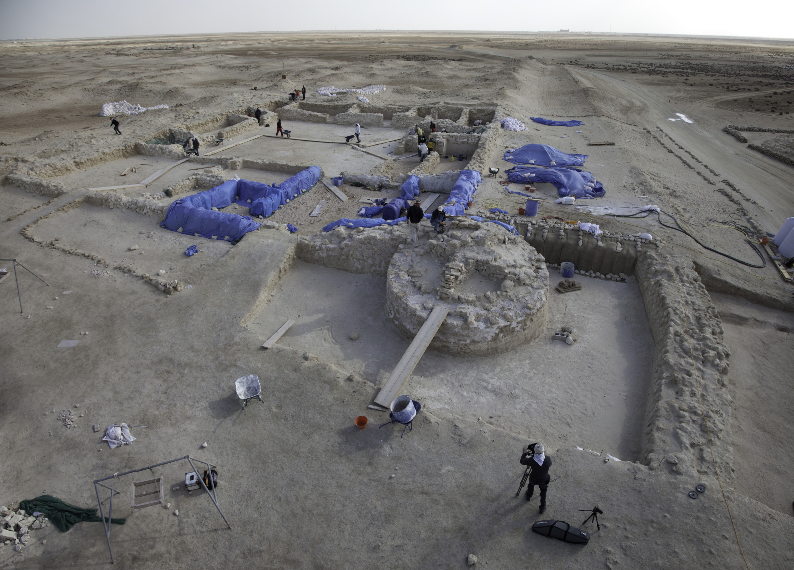 Mindst 20 forskere arbejder i Al Zubarah fra oktober til april, hvor temperaturen er lavest.