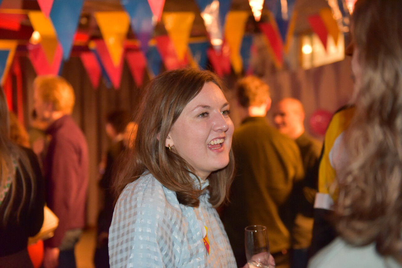 Indenfor brager Tina Turners You’re Simply the Best ud af højttalerne. Katrine Kildgaard stiller sig allerforrest foran scenen og kigger op på Sofie Carsten Nielsen, der roser kandidaterne og de frivillige.