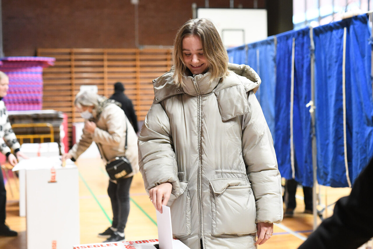 Der er ingen kø ved valgstedet, og Mathilde Kastbjerg bruger ikke lang tid i stemmeboksen på at finde ud af, hvor hun skal sætte sine krydser. Da hun kommer ud, smiler hun fra kind til kind.