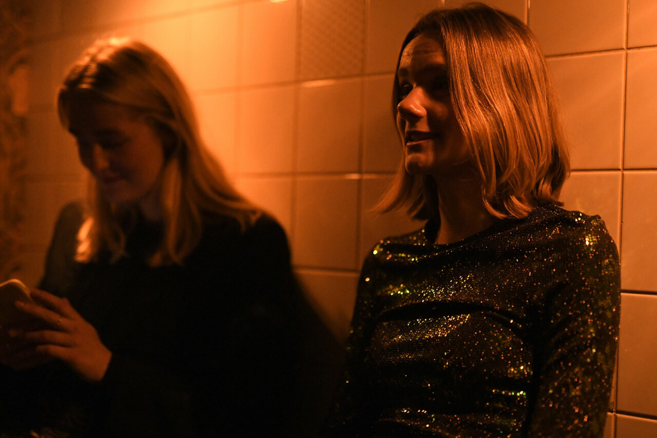 Hendes søster træder ind ad døren, hun skal med til valgfest i Kødbyen på Vesterbro. De to krammer.